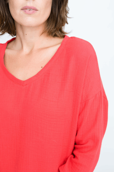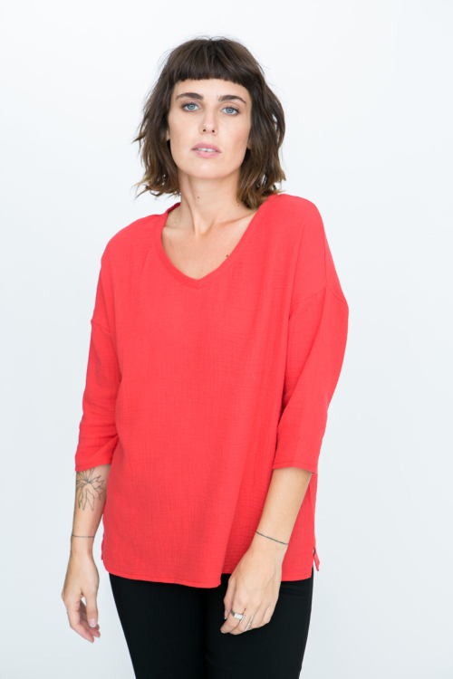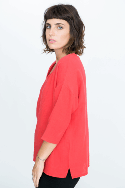 מחשוף V, שרוול 7/8 ושליצים בצדדים.