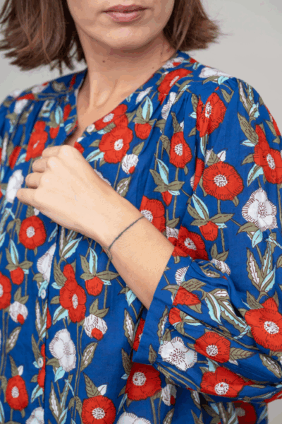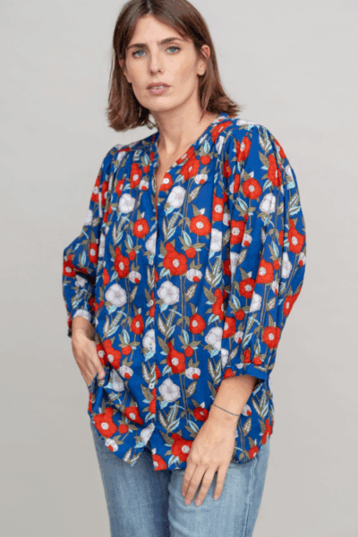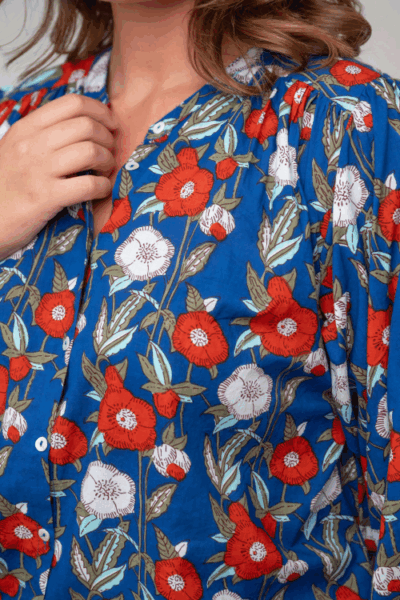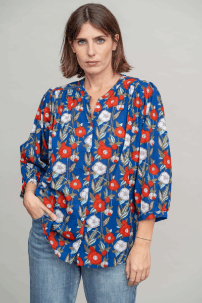 חולצה מכופתרת עם כיווצים בכתף במראה משוחרר