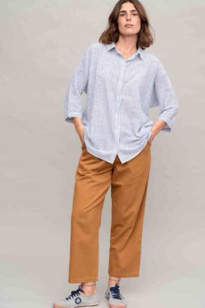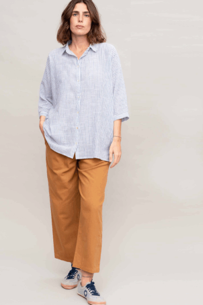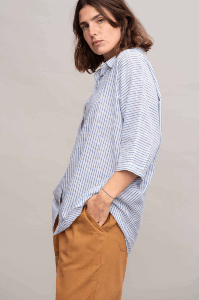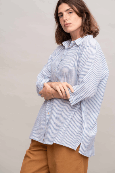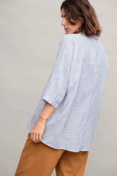 חולצת פסים מכופתרת בגזרת שרוול עטלף וצווארון גברי