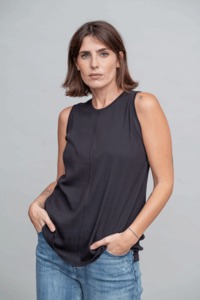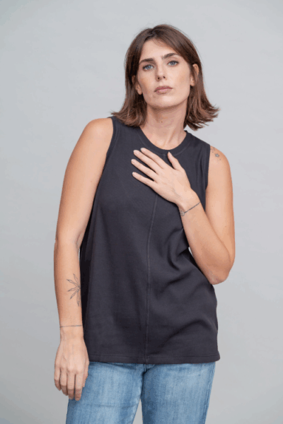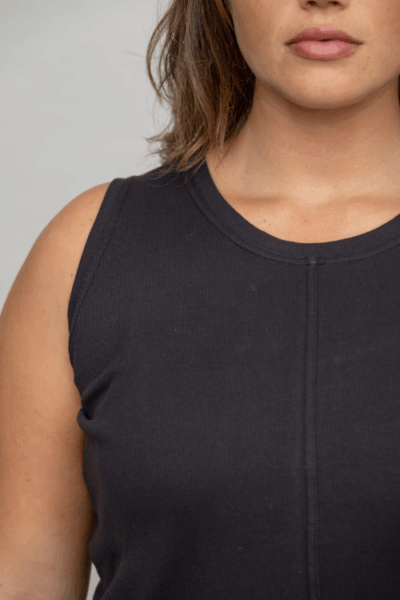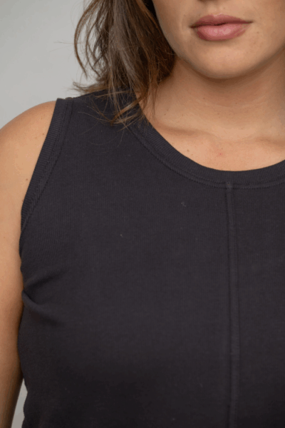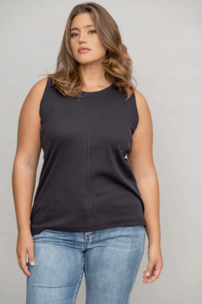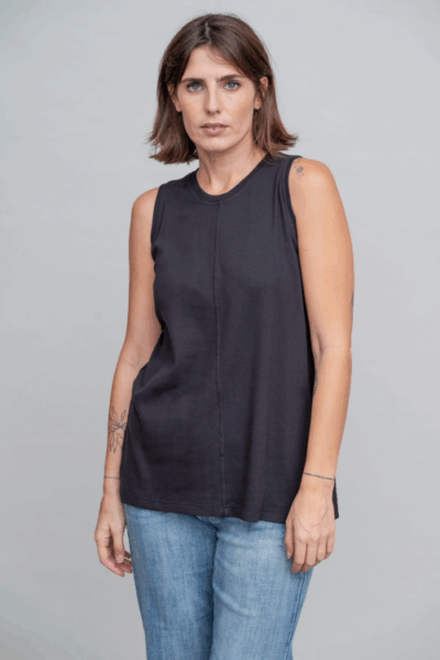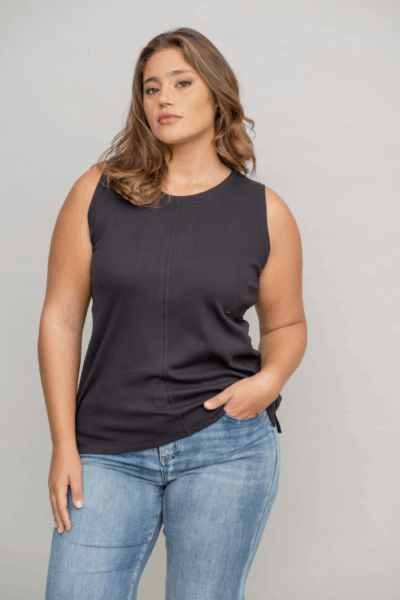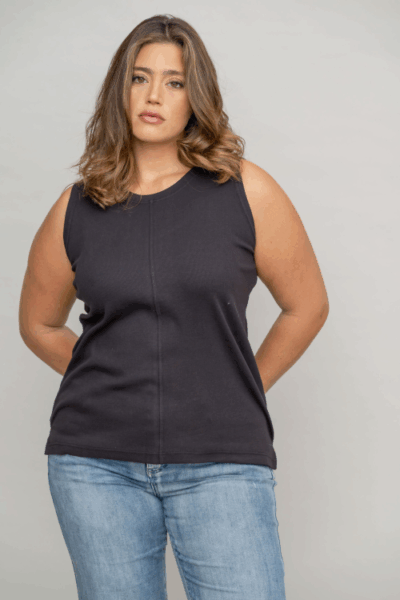 גופיית בייסיק עם מחשוף עגול, תפר אמצע ושליץ בצד