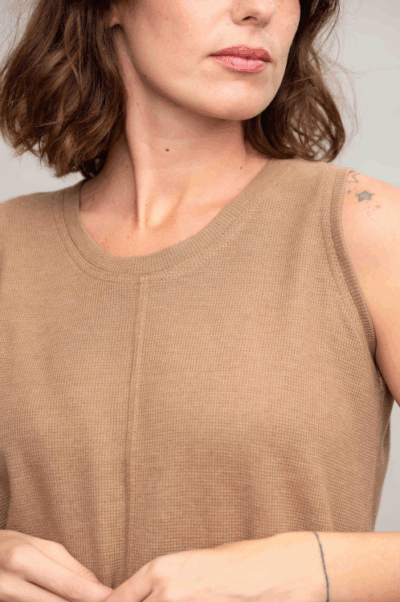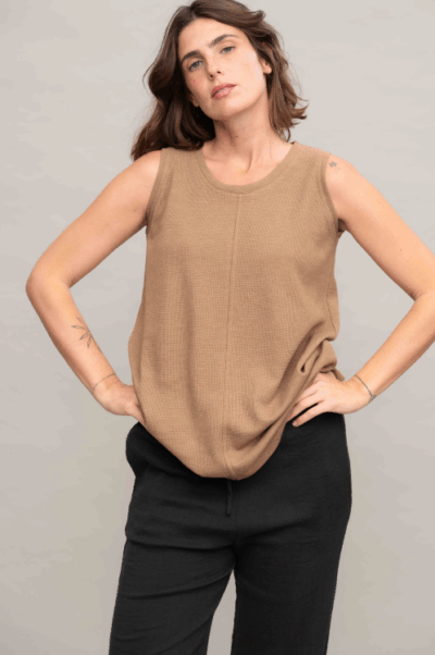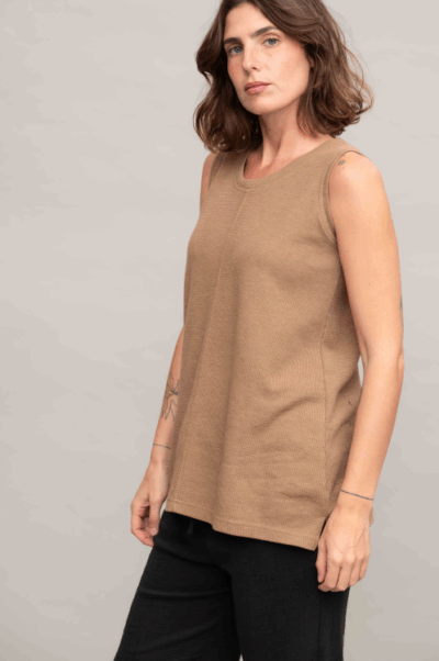 גופיית בייסיק עם מחשוף עגול, תפר אמצע ושליץ בצד