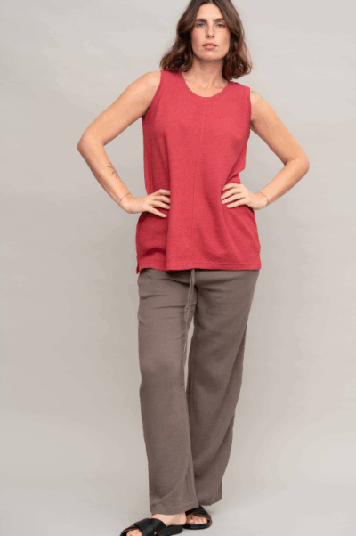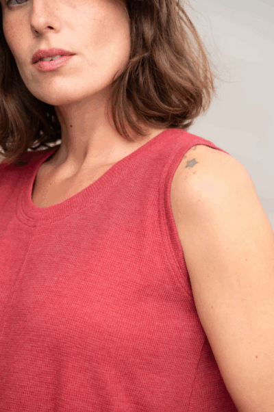 גופיית בייסיק עם מחשוף עגול, תפר אמצע ושליץ בצד