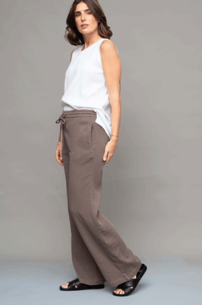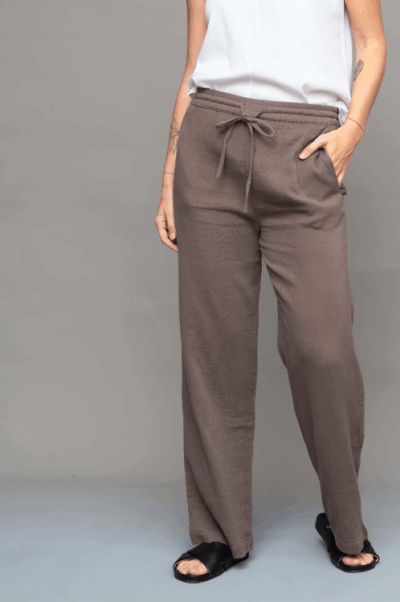 מכנסיים רכים מבד גזה כפול בגזרה גבוהה ונשפכת