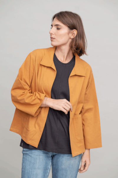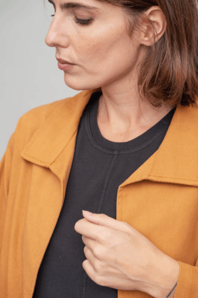 ז’קט עם צווארון גברי וכיסים