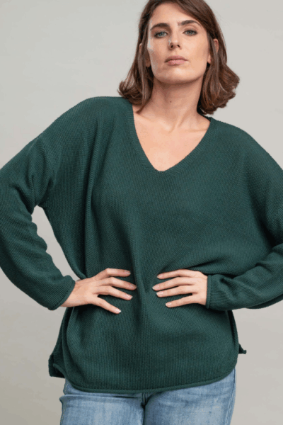 סריג בגזרה רחבה, מחשוף וי ושליץ בצד