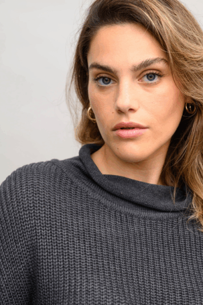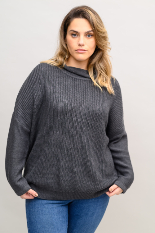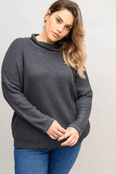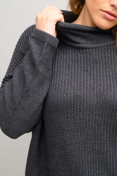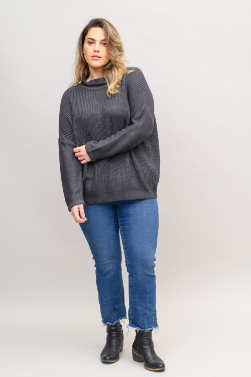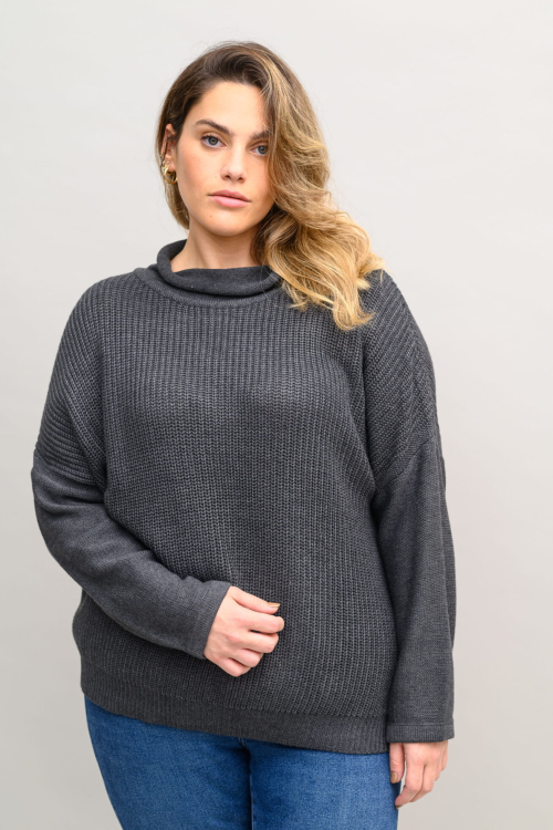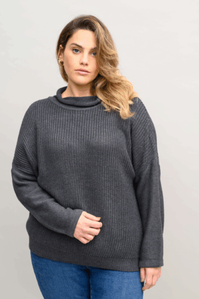 סריג משוחרר בסריגת “עיניים” של פעם וצווארון גולף משוחרר