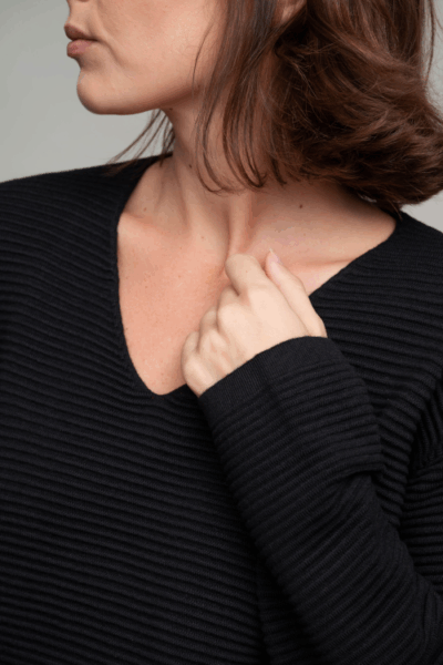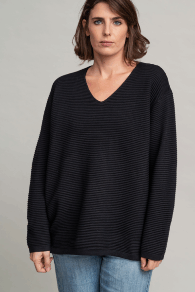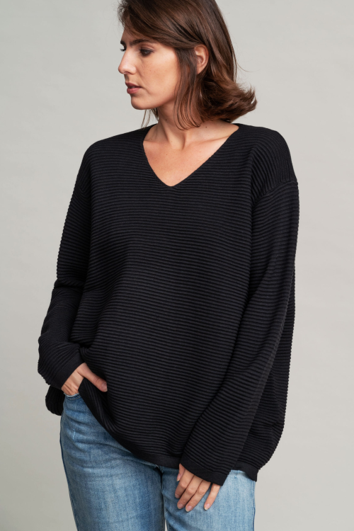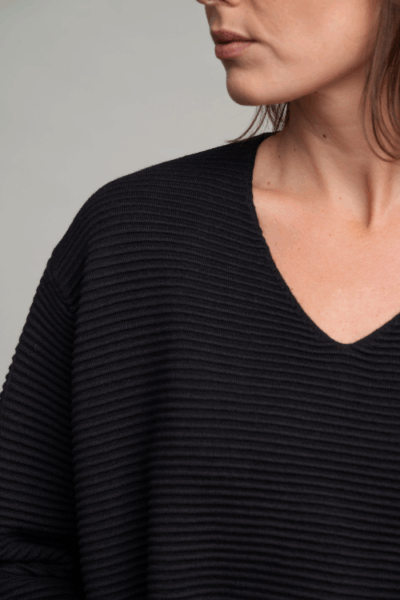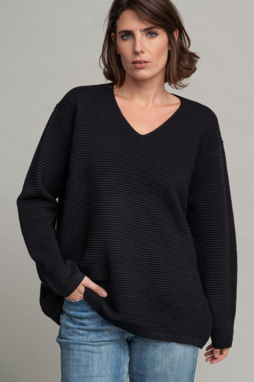 סריג בטקסטורת פסים לרוחב עם מחשוף וי