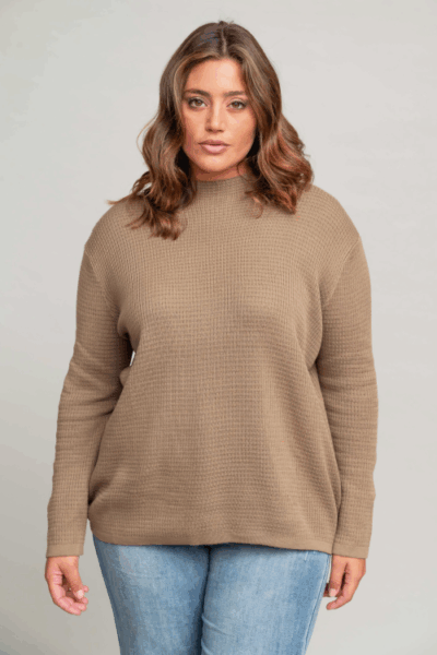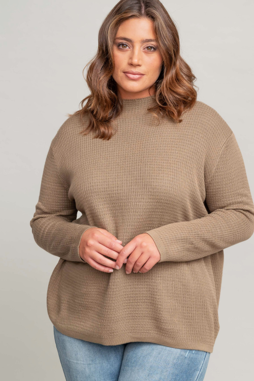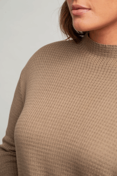 סריג עם צווארון מוגבה בטקסטורת וופל