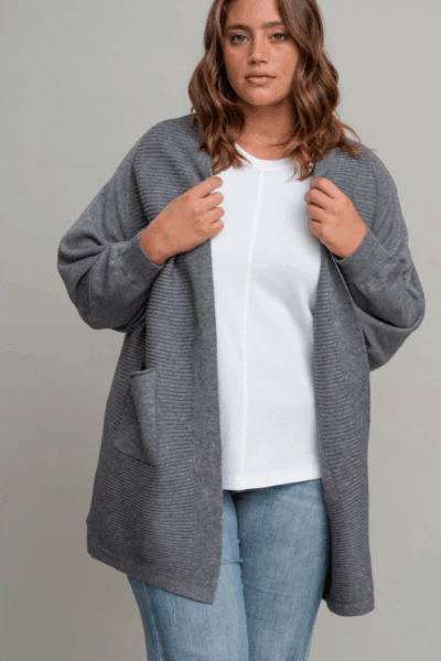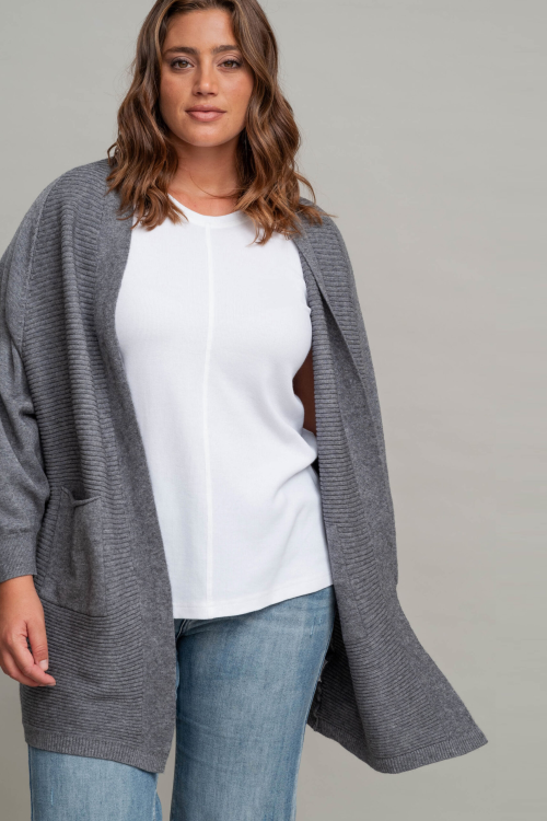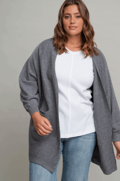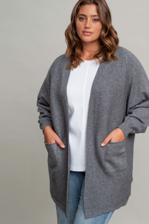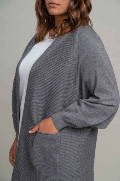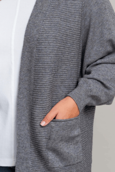 קרדיגן בטקסטורת פסים לרוחב ,עבה וחורפי עם כיסים
