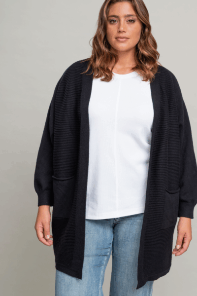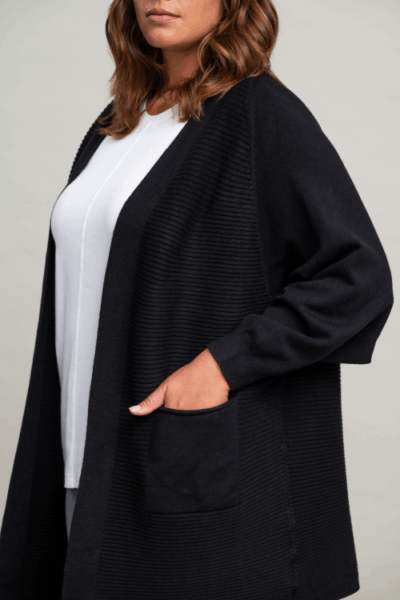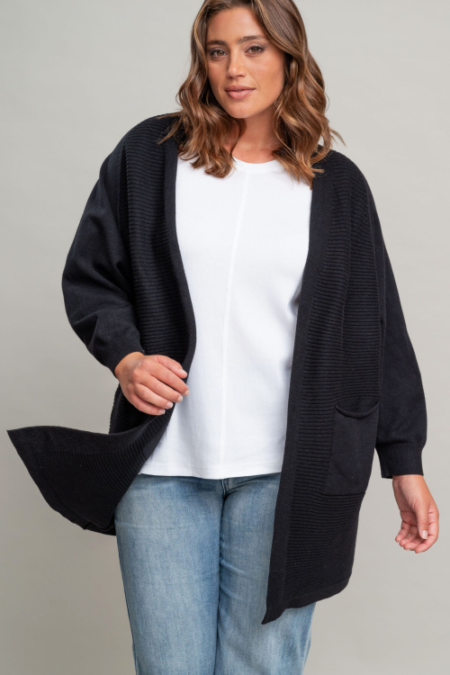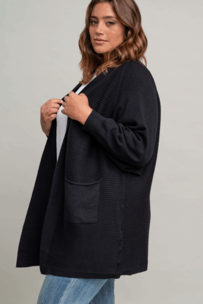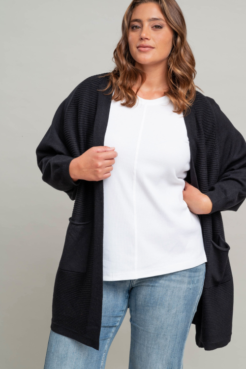 קרדיגן בטקסטורת פסים לרוחב ,עבה וחורפי עם כיסים