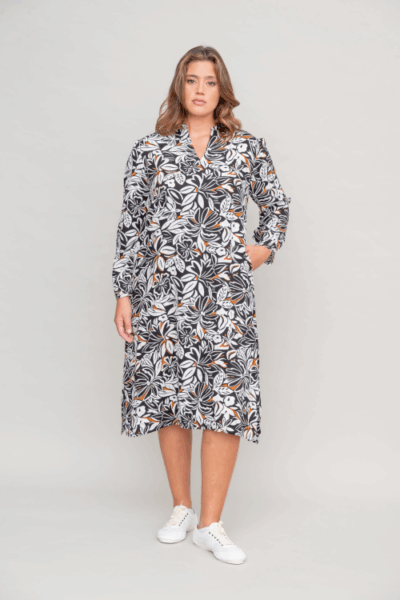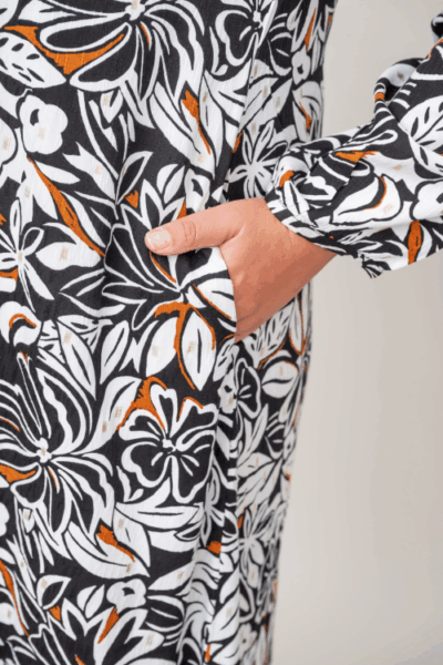 שמלת גלביה עם שרוול ארוך,מחשוף וי וכיסים